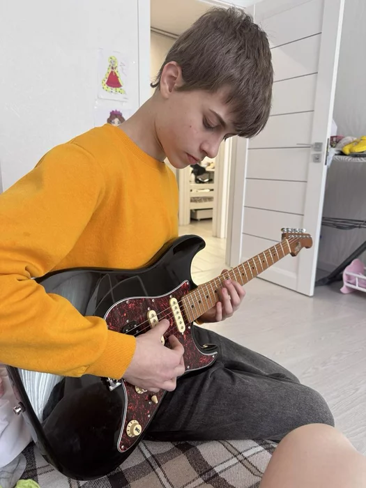 У него есть старший двоюродный брат, который увлекается гитарой и музыкой. У него есть группа с которой они репетируют и дают концерты. И года 3 назад сын попросил купить ему гитару. Говорит хочу научиться играть, мне интересно. У меня был старый инструмент с широким грифом, но с его слов, она ему плохо подходила, неудобно играть. Я тогда скептически к этому отнесся. Мол, если было бы действительно интересно, то играл бы на этой. В общем после обсуждения сошлись на том, что если он хочет гитару, то пусть покупает за свои отложенные деньги, которые он насобирал с ДР. Я тогда думал, что если он решится потратиться, то будет более серьезно к этому относиться. В итоге гитара была куплена и через неделю брынчания - закинута далеко в шкаф. Ну ок, думаю, не пошло и не пошло, бывает. Зато гитара хорошая в доме появилась)))