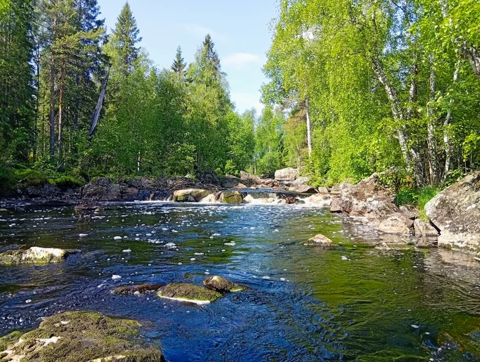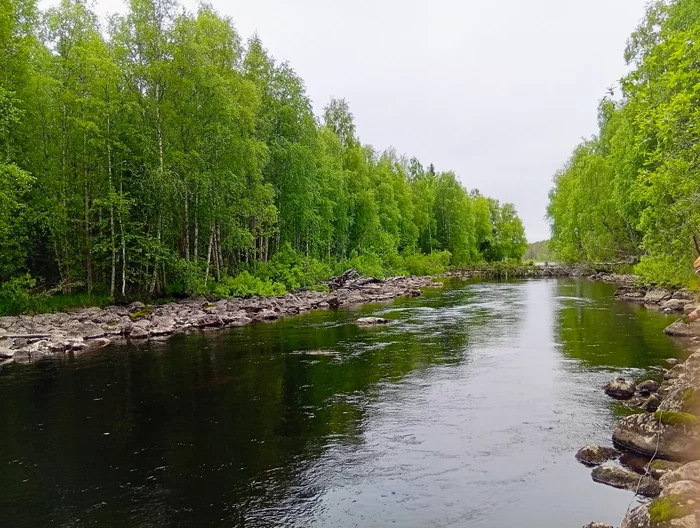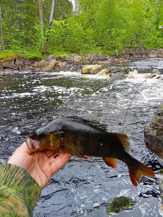 Ну и небольшой видосик. Довольно длинный порог - метров 200-300. Большой перепад высоты, в одном месте мини водопад и небольшой затишок. И вот ты этом затишке рыбеха почти на каждом забросе клюёт. В основном окунь и язь.