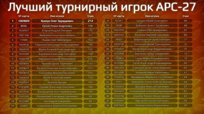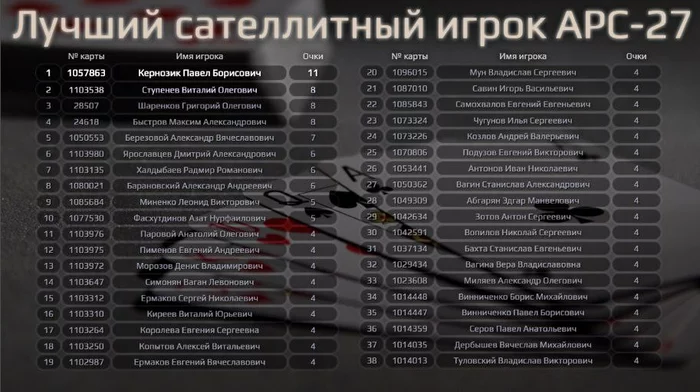 Актуальный лидерборд APC-27 с учетом всех завершенных турниров на 30 сентября❗️