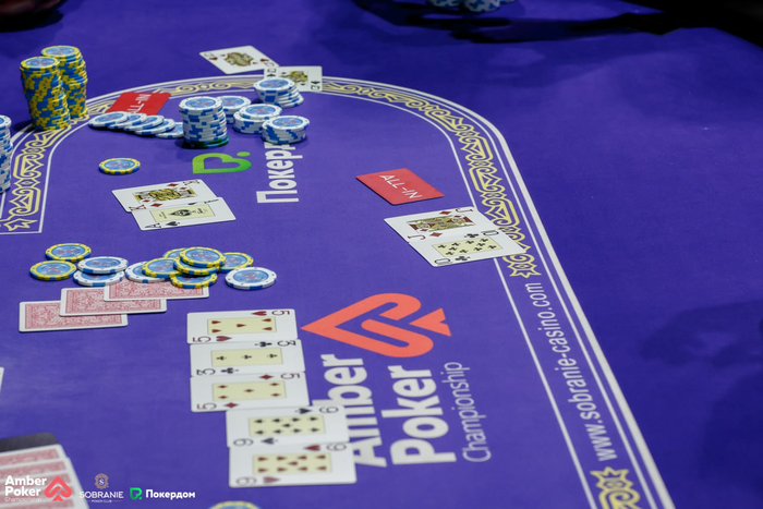 Сергей Медведев самый короткий. Все ждут его вылета. Но он, как бравый моряк, не сдается. Самое интересное выставление выиграл с против ✖️. На флопе положили туза, а терном и ривером пришла десятка и семерка. Две пары. Поехали по 2 ББ.