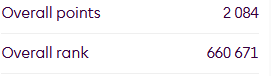 У меня не очень удачный тур, 100 не набрал. Сильно сказалось отсутствие Джексона и наличие Хойлунда (( Пока в топ 1.5к держусь
