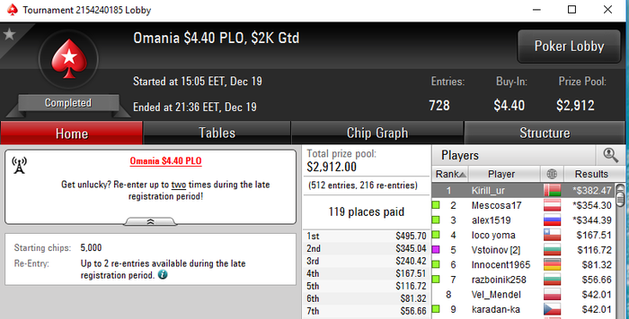 Валидольная сессия выдалась, заколебался Ре-Ентри делать. В один момент мысленно послал респект турнирному директору Старзов, за то, что ограничил кол-во входов в Оманиях и Прогрессивных нокаутах.