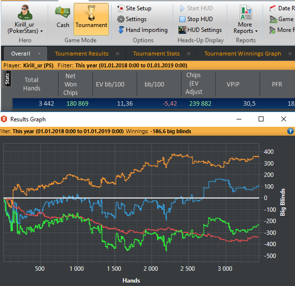 Лично для себя покерный год вышел усечённый, после двухлетнего перерыва в октябре вернулся в "большой покер", словил нереальный ап вначале, просто не мог проиграть ни монетку, ни доминацию. Ближе к середине декабря мне чего-то надоело, воспользовался кнопкой "Вывод". До 15-го BPT, точно не буду катать по-серьёзному. А потом возможно вернусь к вам, ребятки. Но это не точно.