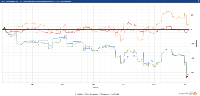 Когда такая раздача случается, то особенно приятной её делает то, что уже поставил галочку сит аут на следующем бб.