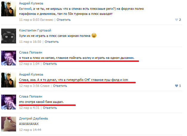 firearsenaloo, охх это попсовое словосочетания - через знакомых. Через знакомых моего бати, которые в свободное время подзарабатывают таксистами, или через знакомых моего кента, которые каждый вечер спайсуху ебашут? Через каких, блядь, знакомых? А насчет фишей - я уже как полгода играю в ноль, так что покер и деньги для меня находятся далеко друг от друга.