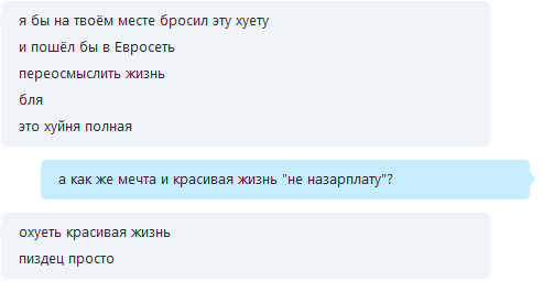 Извиняюсь, что сразу не ответил, просто полная жопа творится последнее время, очень много проебов и настроение не очень. Покер идет по пизде, личная жизнь тоже, ну хоть не тильтую. Пока что.