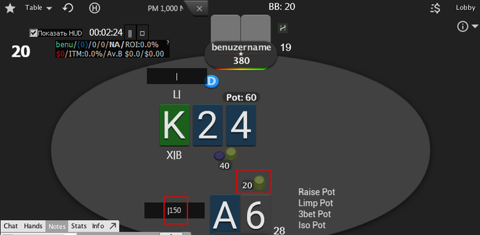 Нужно просто отключить ставку в ББ и ещё можно убрать префлоп разделитель, чтобы убрать палочку.