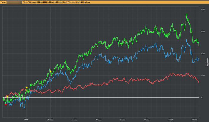 В общем весь остальной месяц, я катал 4-9 столов нл10-16 и старался побольше сражаться с драконом. Откатал я конечно не прилично мало, так как на моем новом кол-ве столов, довольно сложно набивать дистанцию, особенно когда тебе постоянно хочется оставить душную квартиру и уйти, на не менее душную улицу, приобрести бокальчик пива и начать писать книгу - "Как быть рэйкботом и не перестать уважать себя". Зато не плохо повоевал с драконом, разобрал большое кол-во своих раздач и смог сделать бэст манс