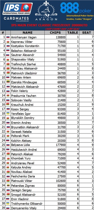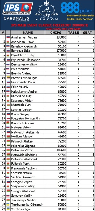 Начало второго игрового дня IPS Main Event Classic Freezout уже через 5 минут, поэтому все участники занимают свои места и вскрывают пакеты со стеками.