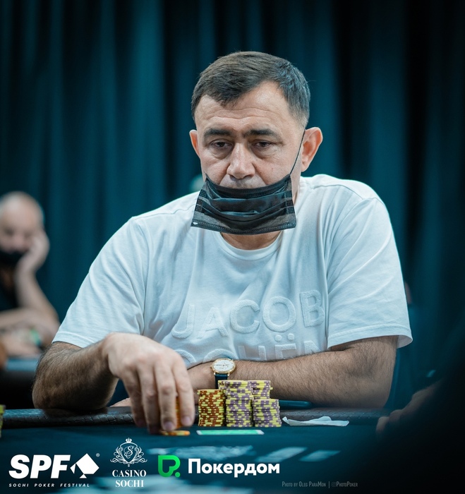 Константин Генералов с коротким стеком защитился с , поехав на флопе . Марат Махмудов показал .