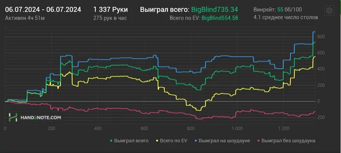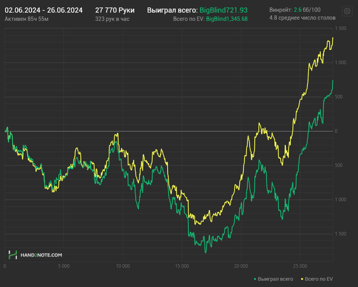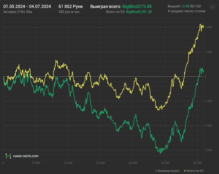 По деньгам вышло около +700-800$ вместе с рб , катал нл50-нл120 , средний лимит где-то нл70-80 получился.