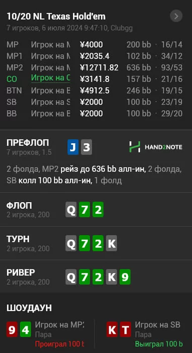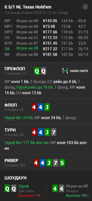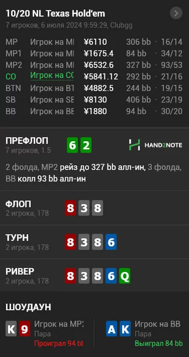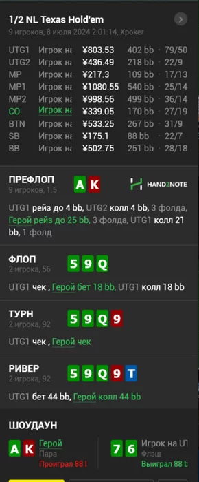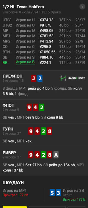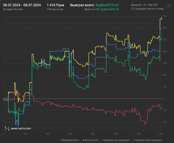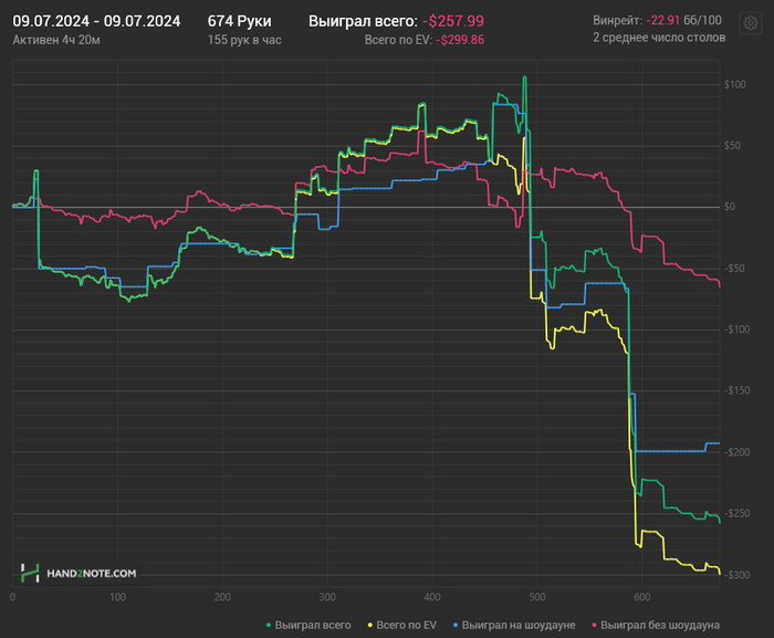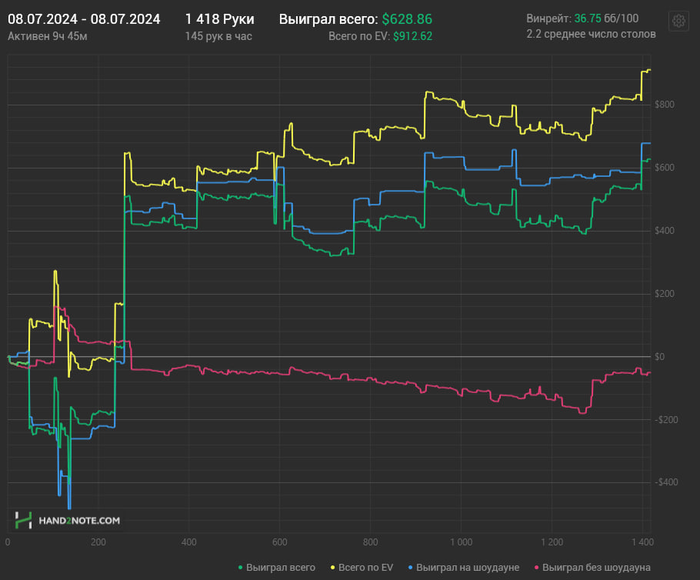 Многие ушли с этого стола в стеках 500-600бб , ну а я закончил -200$. В общем копим силы и потом снова опять попробуем , подписывайтесь на телегу если еще не подписались там в основном выкладываю раздачи , графики и пишу о происходящем в жизни