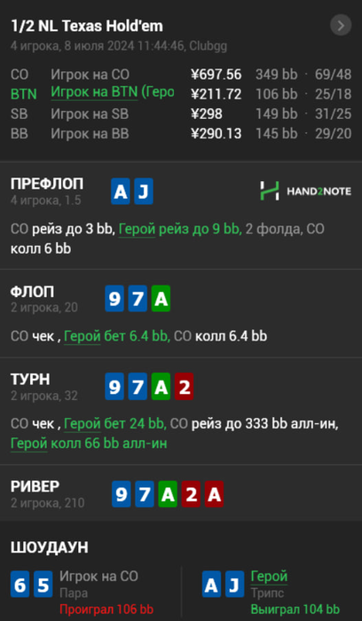 OGamee @ 30.04.24Проблема у меня с колтайм столами конечно , то дип стек проиграю в конце из за них. Щас вот в пол 10 собирался оффнуть все и побежать в магаз за пивом пару бутылочек взять под лигу чемпионов , в итоге выиграл около 50бб и пришлось включать колтайм пол часа , остался без пива(