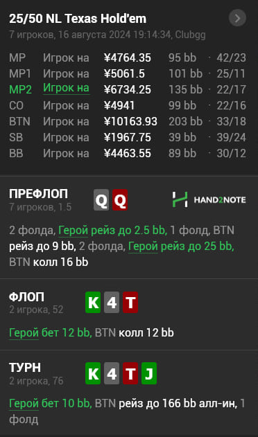 Rainpwn @ 14.08.24заебись чтение, с учетом что даже против блефов эквити не набирается на кол, а если добавить сюда 66/77 и пару Ах красных это суицид кол