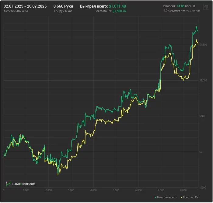 Rustin, Не думал об этом , но смотря топ топычы с низких лимитов 25,50 - врятли я бы соло смог каждый мес делать по 2к на этих лимитах