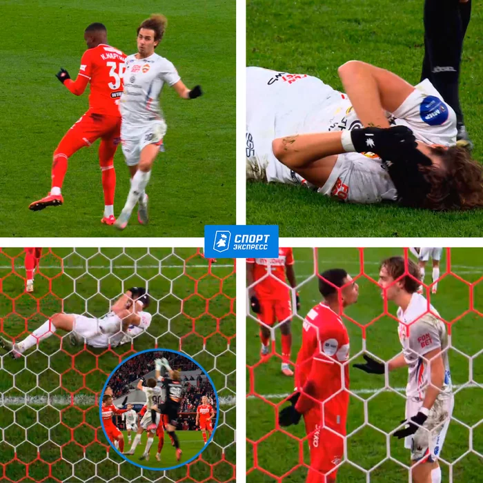 1. Лукин после столковения плечом в плечо с Мартинсом падает, схватившись за голову, хотя до головы Мартинс даже не дотронулся.