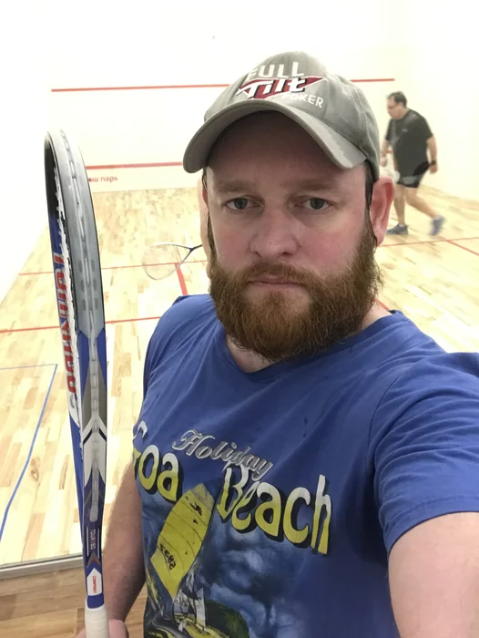 Еще сегодня во время сквоша мне так зарядили в лоб, что у меня аж кепка слетела 😂 Хорошо, что не в глаз.
