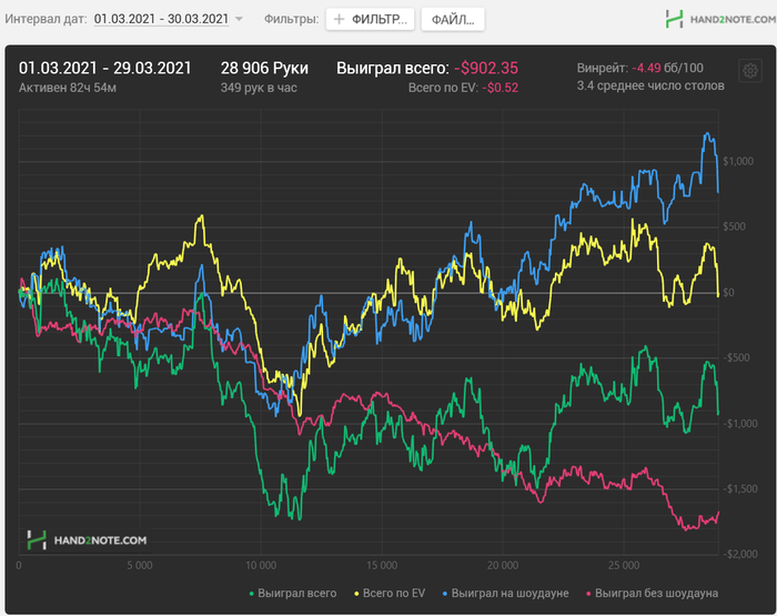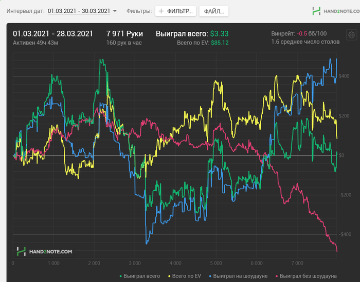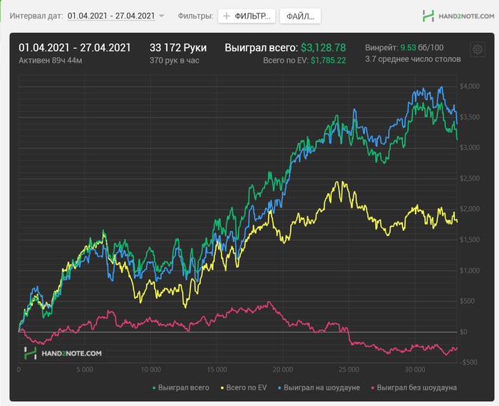 По факту чико +936$, старзы +1200$, покеркинг +730$, 888 -375$, итого +2491$, спасибо х2ну за охуенный трекинг покеркинга и чико. По факту просто приятный чилл отрезок, в котором я выигрывал префлоп монетки. После прошлого адского месяца позволил себе расслабон, который еще и принес какие-то деньги, приятно.