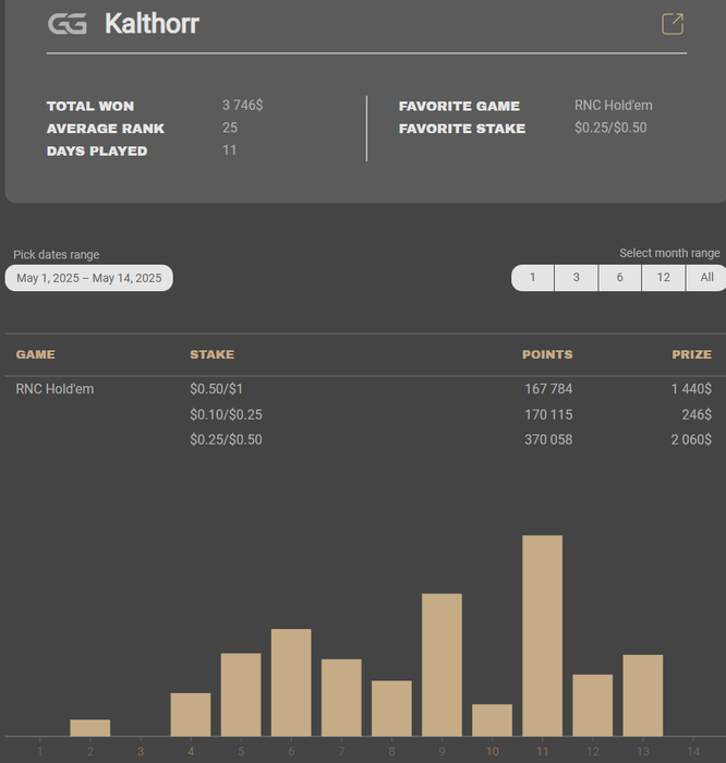 Какой-то ещё был рофл что там хайролер гооврил что даже 1-2к он не смог побить рейк, хотя потом возвращался на 5к+ и играл в плюс, но с 1-2к ливнул в другую сеть и румы ибо посчитал свое ожидания и понял что катает в минус. Не помню уже кто из русских топов это был, но сам факт. При том и этом, на гг и на 1-2к есть люди с невероятным винрейтом аллтайм.
