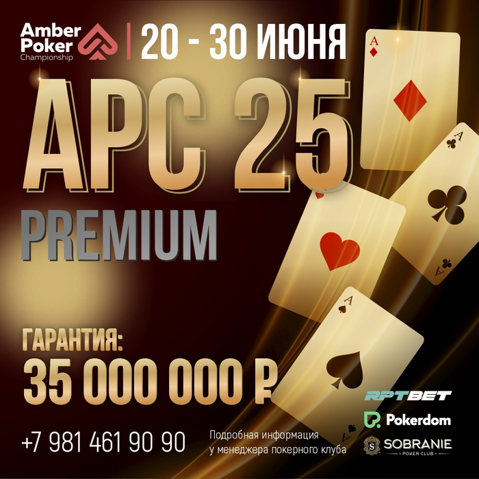 2) 20-30 июня пройдёт очередная покерная серия «Amber Poker Championship» с гарантией 35.000.000 рублей.