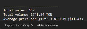 Средняя цена продажи за 1 экземпляр - 3.65 TON