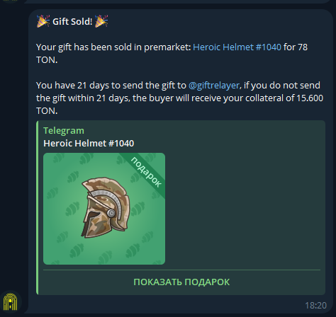 Делюсь прогрессом по продаже NFT подарков телеграм.