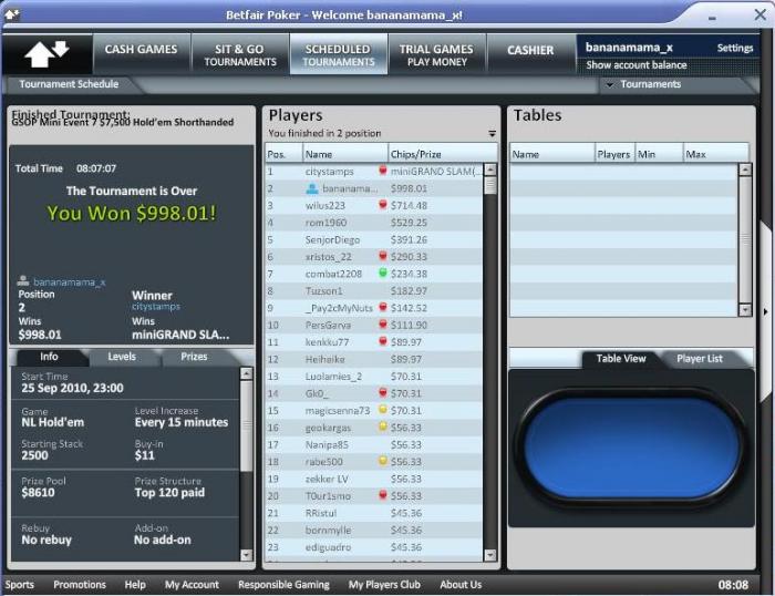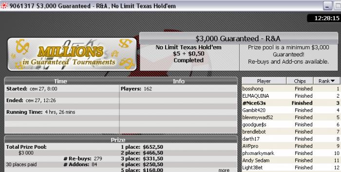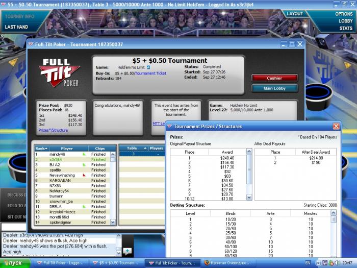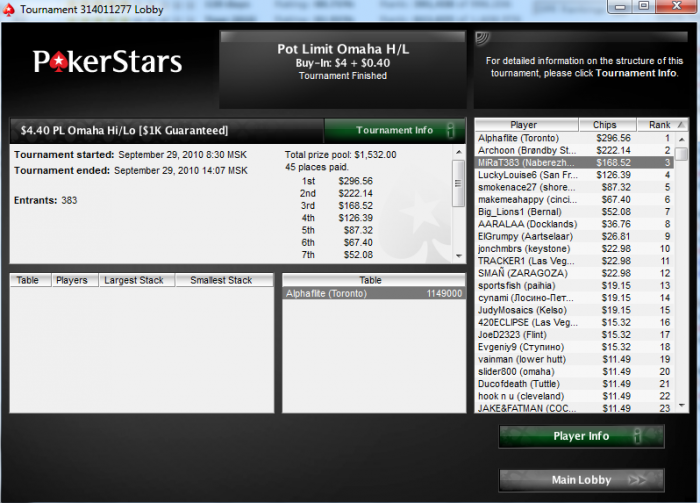 Давно читаю сайт, решил вот зарегистрироваться и от GT регнулся в Club4aces. Первый же турнир затащил)) правда не совсем чисто, поделили на четверых. Но там структура ужасная, думаю правильно было делить. Так что GT, для меня оказался фартовым! Надеюсь это только начало)