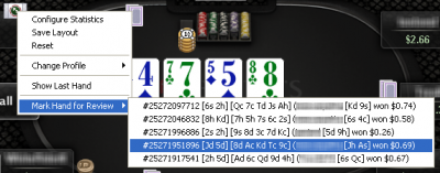 В игре в ХУДе можно нажаьт кнопочку "mark hand', что автоматически пометит руку для ее дальнейшего разбора.