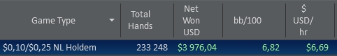 Я играю онли нл25 сх. Хобби-игрок, таких подробностей, как доллар/час я не знаю) А если быть точнее, то мне это неинтересно :) В хм захожу только для того, чтобы сделать скрин или сохранить раздачу для форума)) ВР в районе 6/7бб/100 на выборку тыщ 230. Никогда не миксовал лимиты, выделял деньги и шотал. Если бьешь поляну - беги на лимиты выше. Поверь, ничего страшного в этом нет) Притрешься к поляне и начнешь рубить бабос, заживешь красиво.
