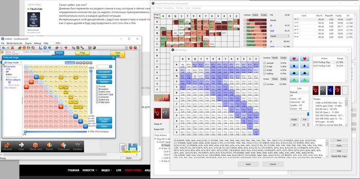 В общем обзавёлся я гто чартами и начал работать над префлопом в префлоп хиро. Кстати, очень удобно, ребята молодцы. Над постфлопом работал в привычном спф, где в процессе работы нашёл много чего интересного для себя, что можно было применить и в 25бб игре. Также смотрел курс едуки и разных стримеров з500, на ютубе благо их достаточно. По кэшу в целом материала достаточно много.
