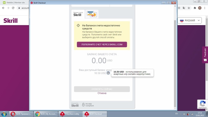 P.S. Если пополнять Skrill/Neteller при помощи карт MasterCard, то перевести средства в рум, букмекерскую контору, казино не получится. Они по умолчанию помечаются, как средства "не для азартных игр".