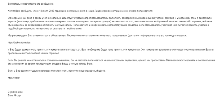 Сотрудник сапорта ответил: "можете не беспокоиться, ничего нового не произошло, мы просто иногда вносим изменения в правила".