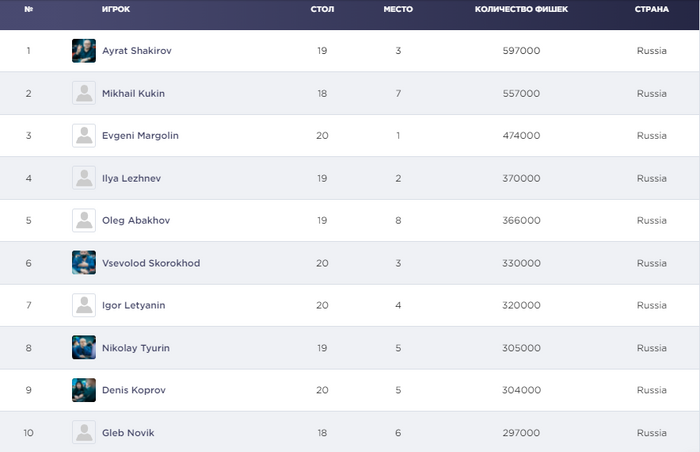 А вот Денис Власов оказался главным неудачником баббла. Он запушил 45,000 со второй позиции. Глеб Новик заколлировал на большом блайнде.