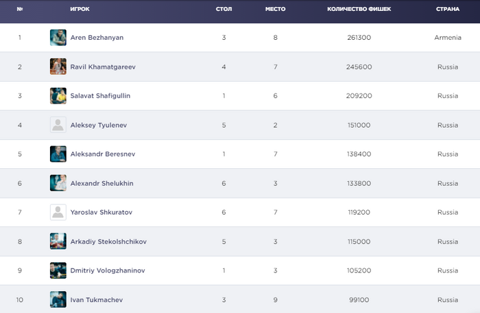 Стал известен состав финального стола: