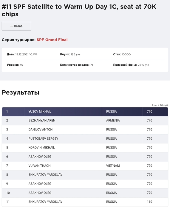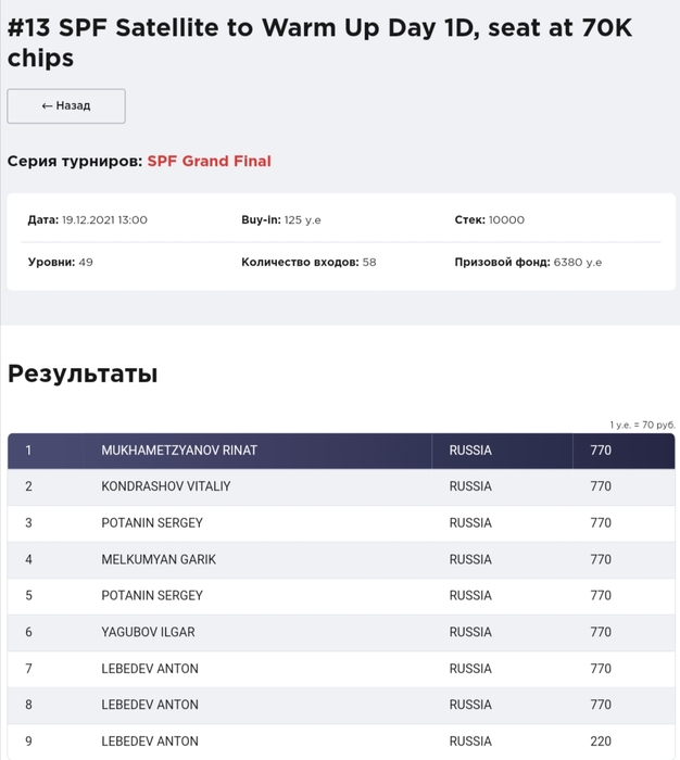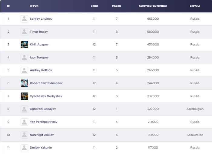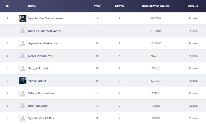 Вячеслав Дербышев запушил 121,000 с первой позиции. Илья Тимофеев (МР) нажал просто колл. Агарази Бабаев (СО) со стеком 68,000 выкинул .