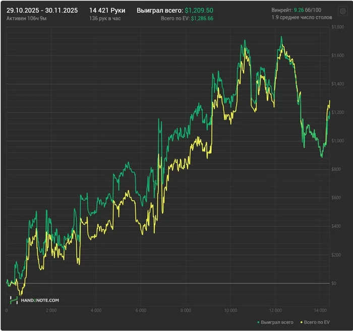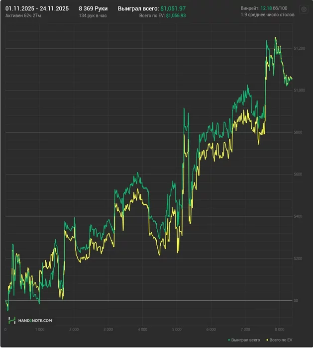 Много рук сыграно без стат, со всеми плюхами вышло +2,5к, в целом пойдет.