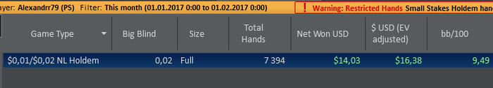 hm2buyer, бетсайзинги такие использовать не следует конечно, а насчет графика ты погорячился конечно, графика то толком и нету, есть только 2.5к рук. График это хотя бы ну какие нибудь 30к рук. Если ты думаешь что твоя возможная плохая игра зависит от простейшего префлоп чартика опенрейза, то это не всегда так) постфлоп решает, а постфлоп тесно связан с префлопом, а трудный постфлоп с этим чартиком точно не светит) Решения максимально просты исходя из рук которые ты разыгрываешь по этому чарту)