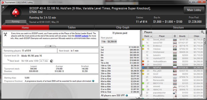 Poker Stars $1000+$1000+$100 No Limit Hold'em Tournament - t2500/t5000 Blinds + t625 - 5 players -