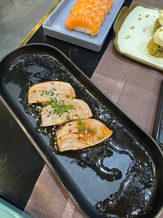 Можно заметить, что тут в основном рыбные блюда, мясо, мисо суп. А вообще можно заказывать и пасту, рамен, рис, боулы, куча блюд приготовленных во фритюре и много-много чего. Мы уже знаем, что нам нравится, а что не очень. Хорошо, что при заказе какой-то позиции порции небольшие и можно попробовать много всего разного. Например любой рол - 2 кусочка, но если хочешь 10, то просто 5 раз плюсуешь в корзину и всё.