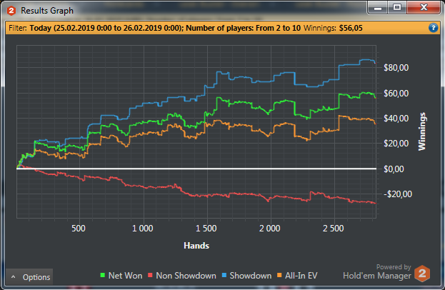 у меня был целый месяц такой игры почти каждый день недодача играл нл 5 скинул бы график да снёс базу на около 60к рук недодача была где то 25 стеков у сандрикса кстати тоже ,,классный,, выдался февраль в этом плане увы приходиться всем через такое пройти и не раз