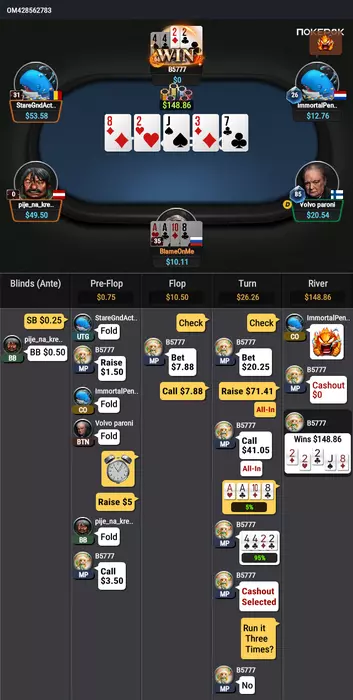 Illmatic, нет не норм. Во-первых , почему не ставишь флоп , когда у нас уязвимый фуллхаус . Во-вторых у тебя на ривере 4ый натс, там надо колом его рейза сильно задуматься стоит с скорре всего выкинуть. Не то что репуш.С какими руками хуже он также должен сыграть ?