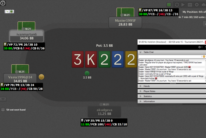 после этой раздачи прям очень меня напрягло. ну и статистика у них одинаковая. статы. впип, пфр, три бет, вторая строка количество бб, фолд на кб флопа, количество рук, кб флопа, бет в лимп пот. топ парой и не ставил?