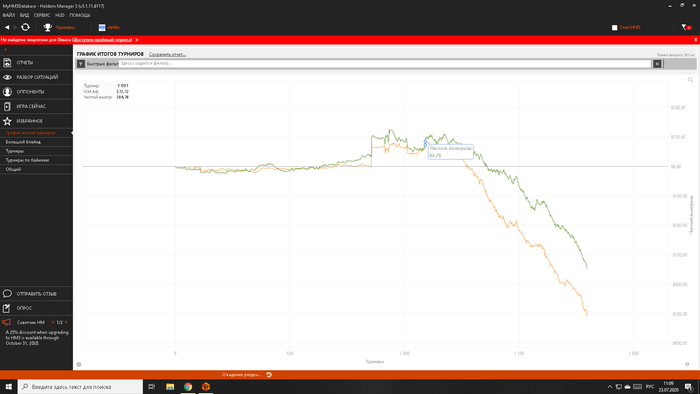 Подскажите пожалуйста, в чем проблема, ХМ в один момент начал показывать неверную статистику, после каждой сессии ухожу якобы в минус и по ев и по факту, но на самом деле играю в плюс, до отметки работало все нормально, что могло произойти? (в настройках ничего не делал, начались затупы сами собой)