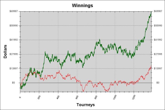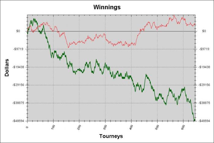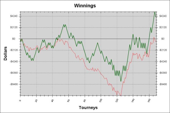 Интересно, но факт.Раньше(на средних и высоких лимитах) у меня не было затяжных стриков в СТ, максимум 3 дня(в месяц выходило не больше 7 минусовых сессий).Часто было так, однодневный недобор в 10-20БИ,в последующие 1-3 дня все легко отыгрывалось. Конечно тут нужно учитывать РОИ на данном лимите + ср.ур.оппов играемой поляны. Но все же, разница в стриках с каждым разом чувствуется сильнее(дело не в деньгах, а в БИ).Если бы не занос 37ого эвента на ФТОПСе, мне было бы очень сложно в моральном плане, не исключаю того, то что мне скорее всего, пришлось бы спускаться на лимит ниже. Но на данный момент, БР и эмоциональное состояние в полном порядке(за все эти ужасные две недели в СТ я практические не тильтовал,что уже хорошо).