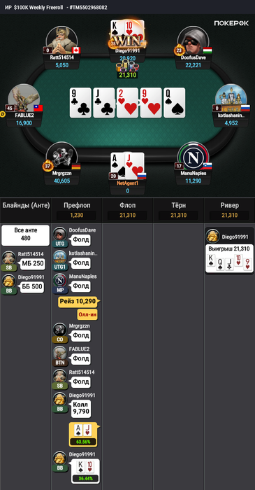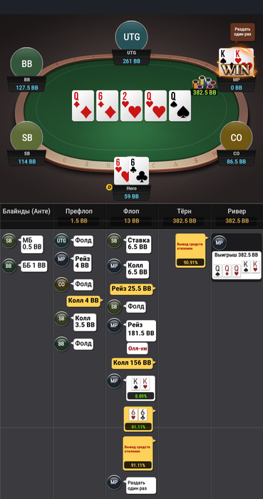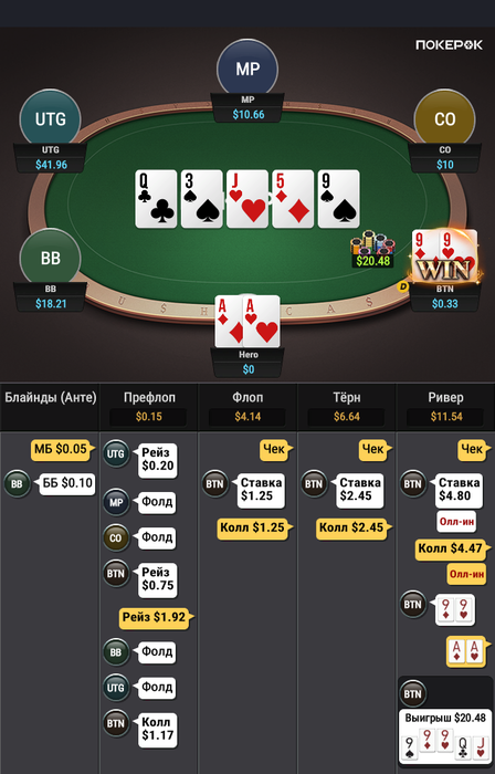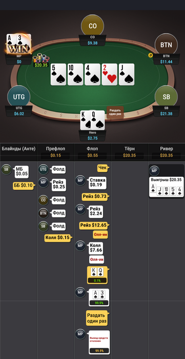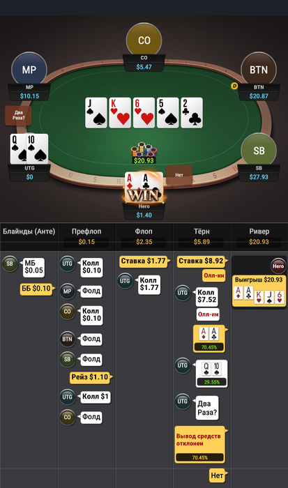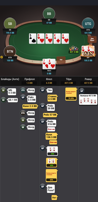 нужно во флопзилле построить диапазон и посчитать свои шансы на победу