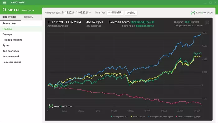 Это точно не история для гриндеров, здесь не получится играть 6 столов и 500 рук в час, это про селект и двузначные винрейты за хорошими столами.