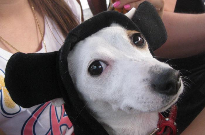 это точно))) шмоток у неё много=) но одевается она только по случаю.. когда, например, на тусовку едет (как в тот раз на пикнике). А вот на прошлый хеллоуин она была в костюме Микки Мауса (на фото)