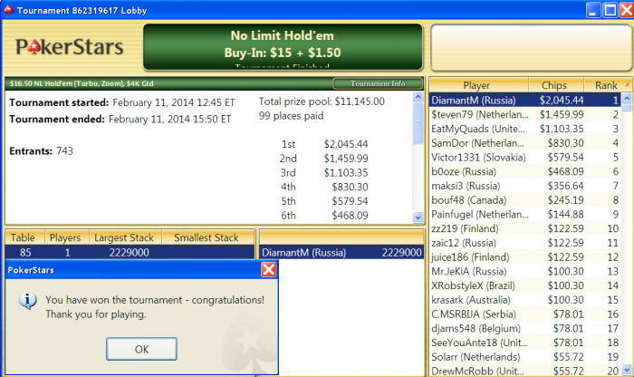 Не так. В этих сателлитах если набирается на полное третье- то было бы три. Не набирается- сцмма распределяется между несколькими предыдущими местами, но не менее 1 баина в 700 евро. Вчера было: 3,4,5,6 получили по 2100 и 7й 1500