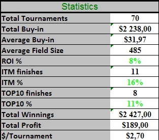 10.10.11 $1,750 GT Freezeout 14/49 $0 55<QQ