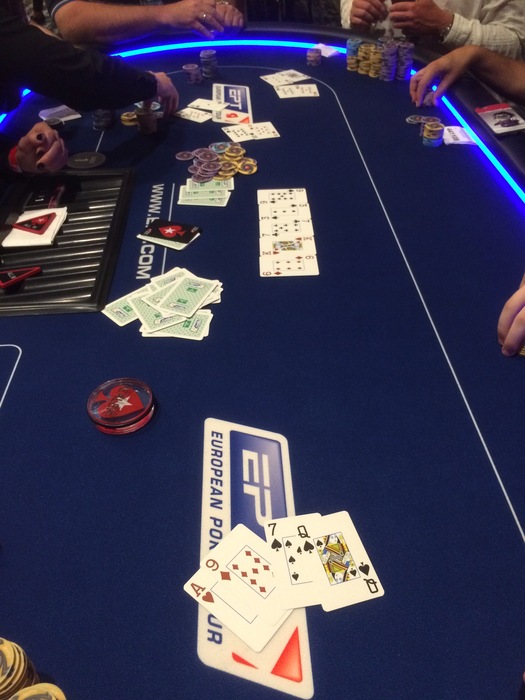 Сам турик по 1к складывался изначально хорошо. На первом уровне выставился с Заей. Был старше на всех улицах кроме терна, на котором уже собственно и поехали с спр<1. Потом играл очень спокойно, не подворачивались лихие споты и продержал двойной стартовый 3 часа. Набил 50к и поехала отдача. Очень быстро все произошло, проиграл где-то 3 банка по 10бб.